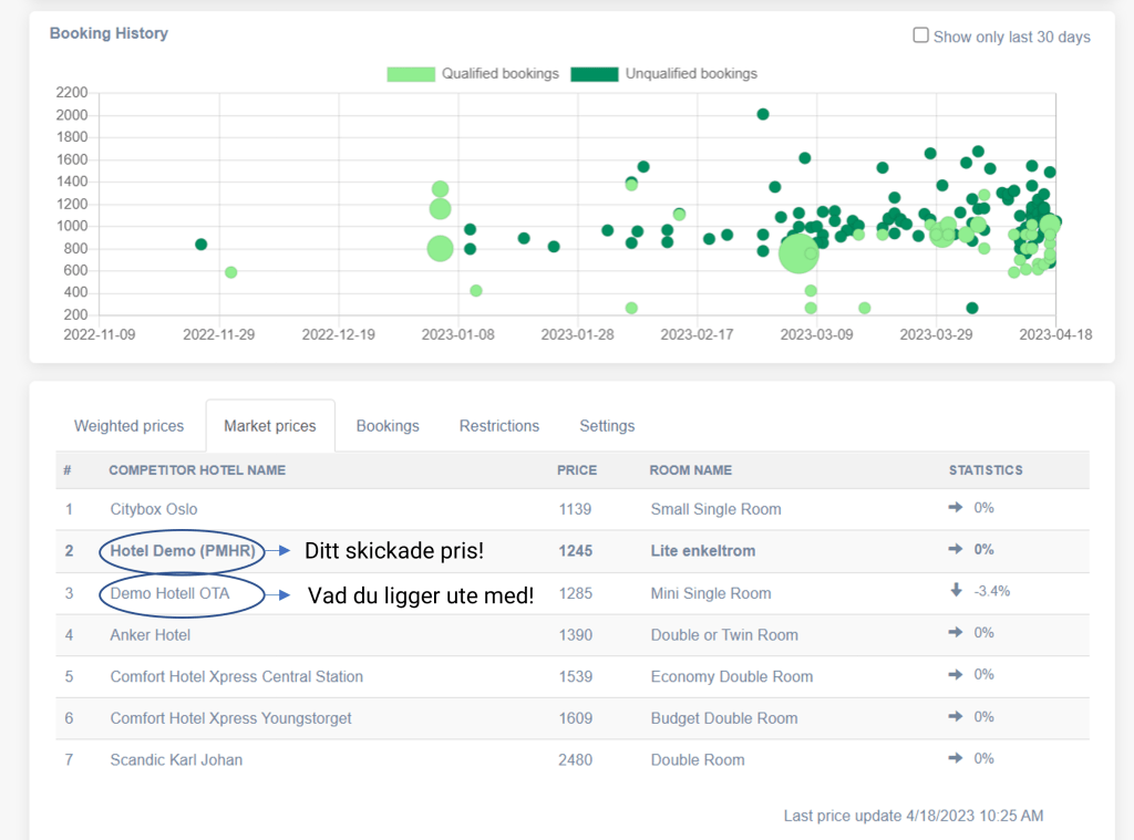 Nu kan du se både ditt skickade pris och det pris du faktiskt ligger ute med på OTA. Det hjälper dig att få koll på om t ex OTA:erna rabatterar dina priser. Detta gäller för alla som arbetar med konkurrenter. Bra va?!