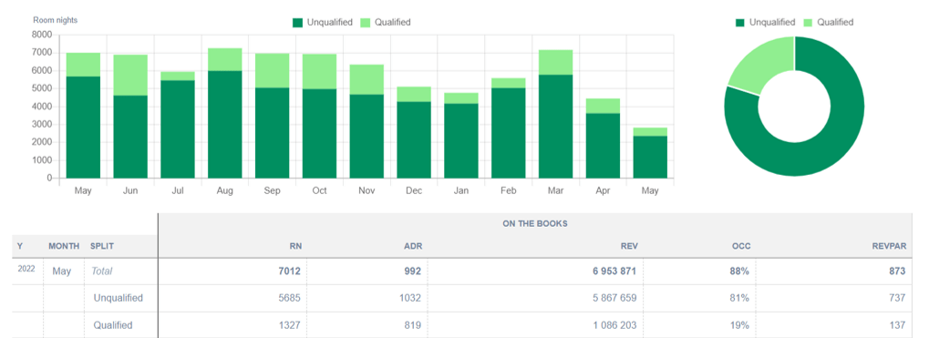 We have developed a report so you can see and track how many of your sold rooms are Qualified and how many are Unqualified. Qualified is, for example, corporate and Unqualified is bookings from the open market, OTAs, etc. You can produce the report per day, per week, month or year. You can also compare with other periods to see your progress. Good, huh?!