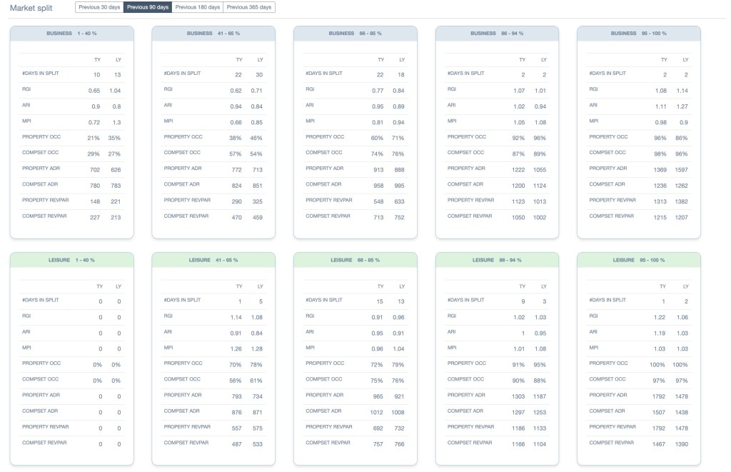 With our new Benchmarking report, you can now view key performance insights. Instantly see how you’re performing in different demand situations – whether it’s business or leisure, high or low occupancy periods.